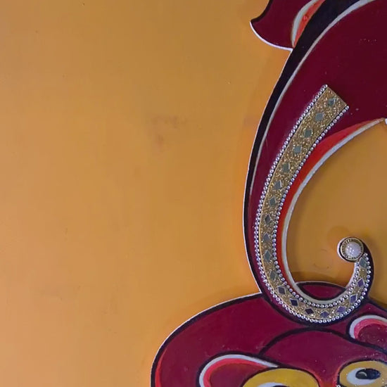 Handcrafted Ganpati ji tabla idol Wall Hanging with Mirror & Kundan Work