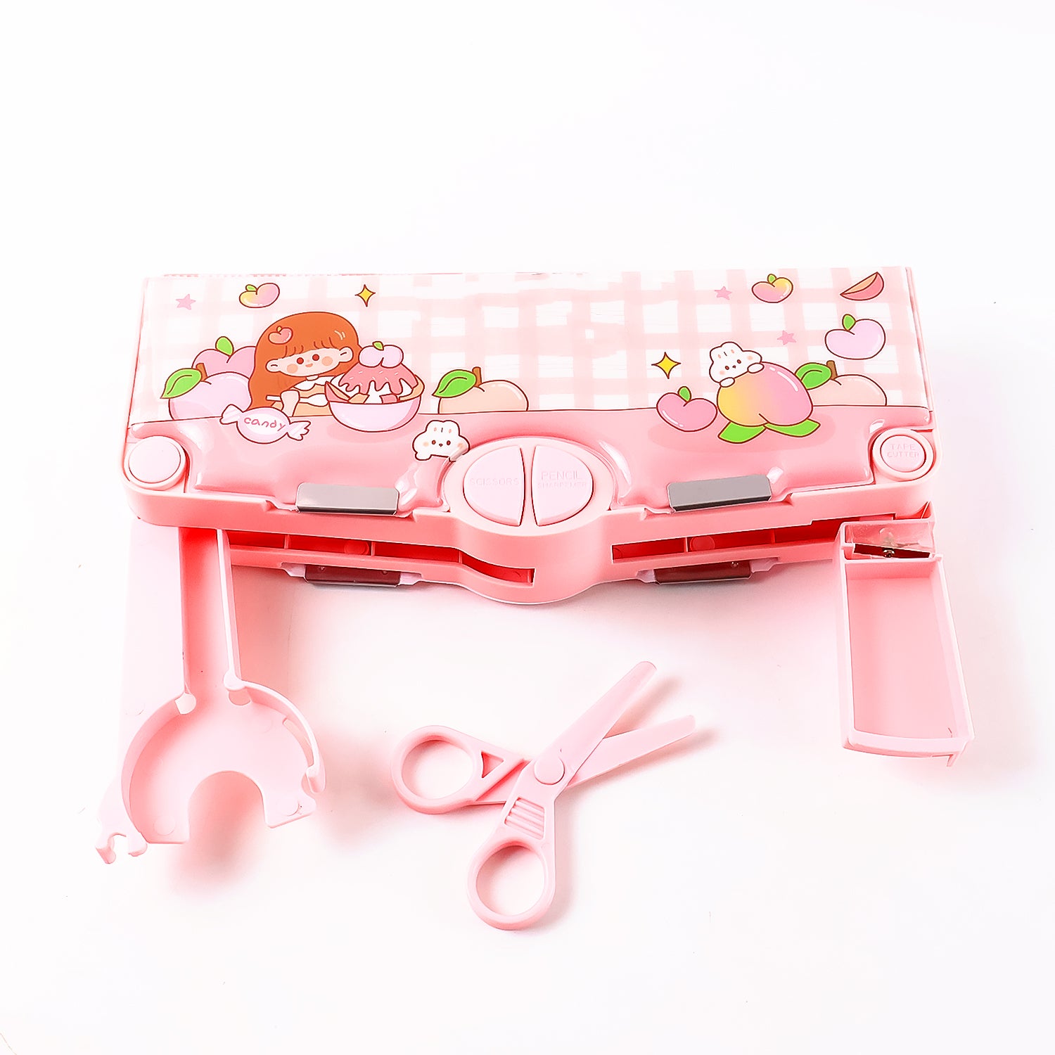 Make school fun and organized with this adorable Multifunctional Cartoon Pencil Box designed to delight kids while keeping their stationery neatly arranged. Featuring vibrant pastel prints, this double-sided pencil box includes multiple compartments and pop-up utility tools like sharpeners, eraser holders, a mini drawer, and pen slots, all secured with magnetic closures.