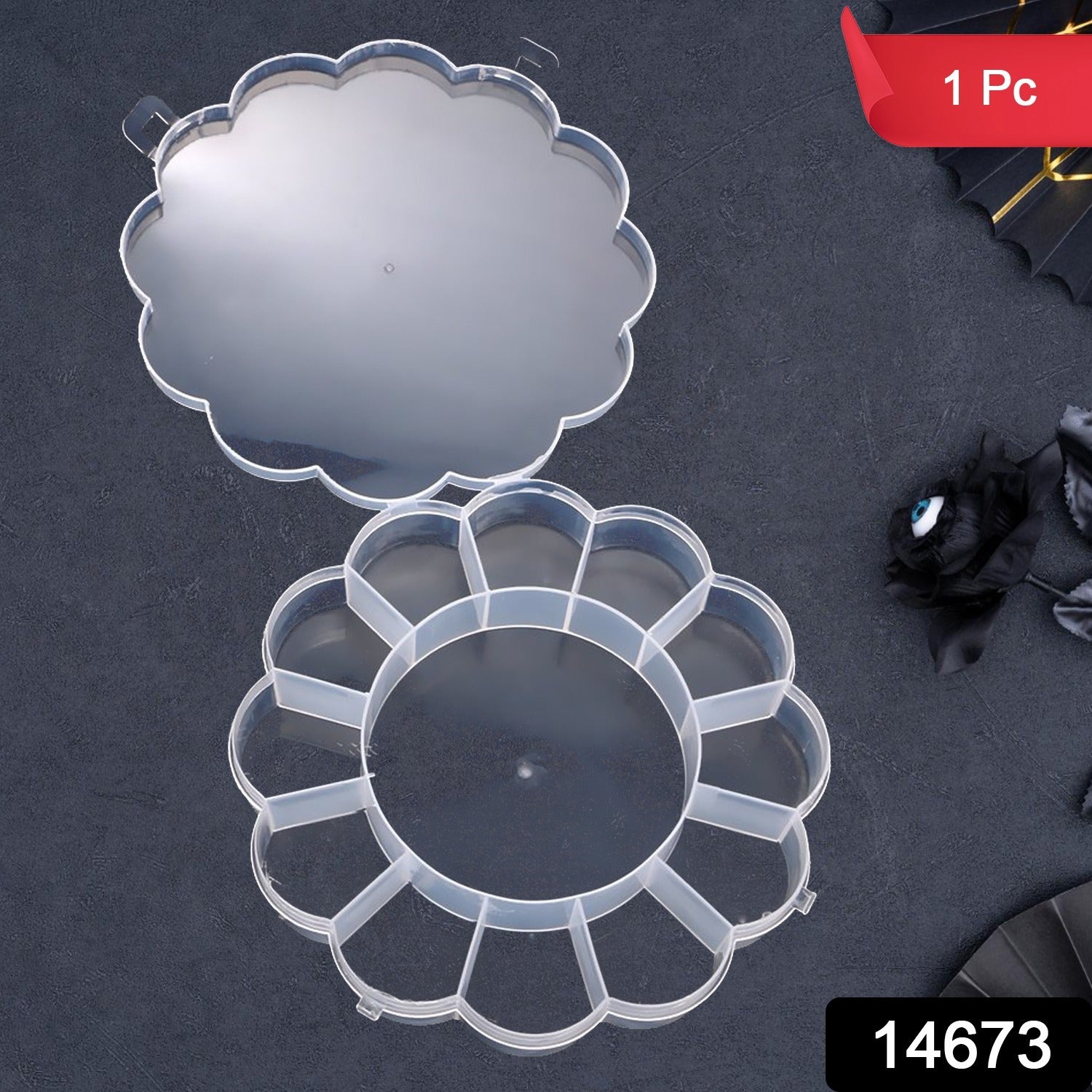 Add a touch of creativity to your storage needs with this Round-Shaped Transparent Organizer Box. Designed with multiple small compartments, this box is ideal for keeping tiny items like jewelry, beads, buttons, screws, or pills safe and sorted.