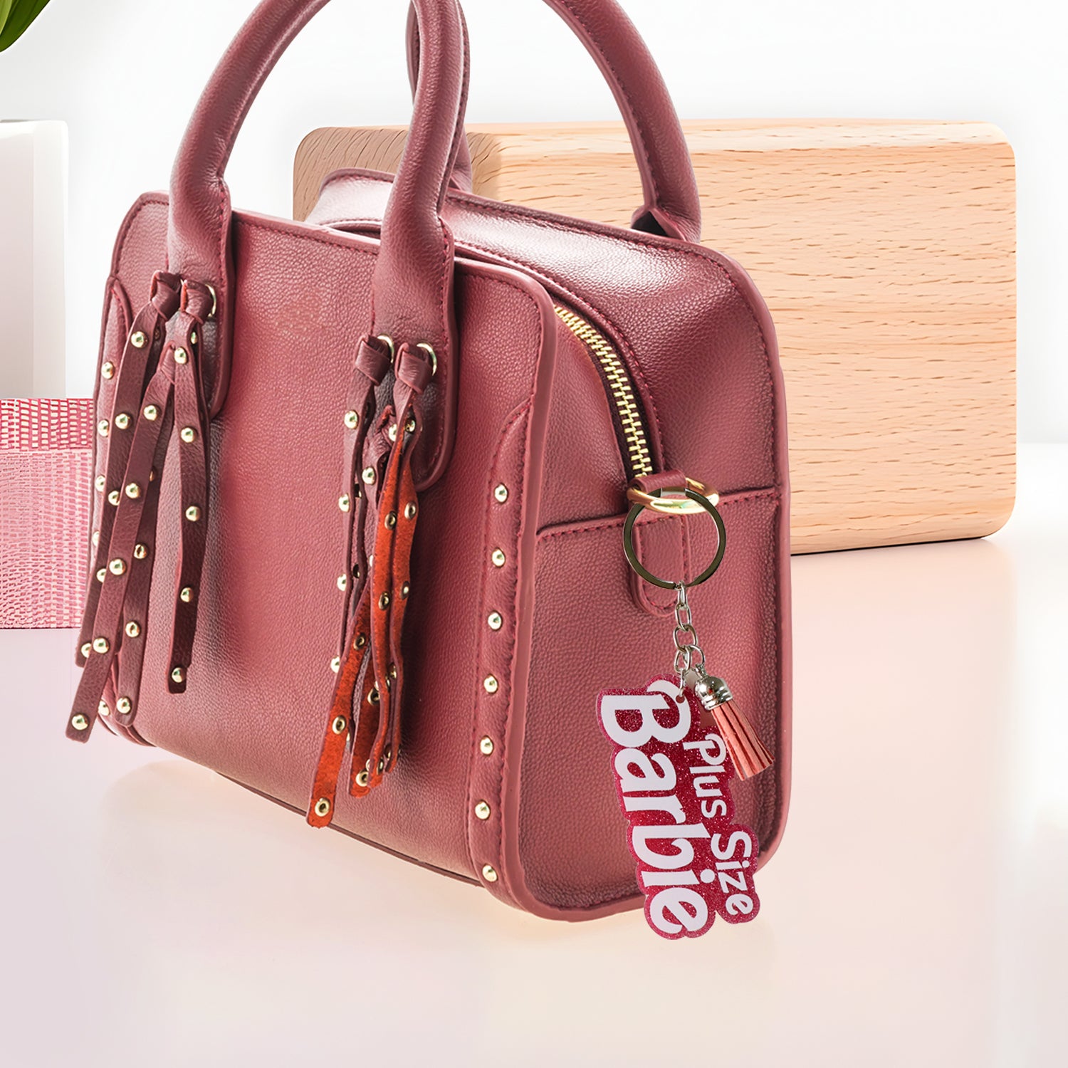 Trendy “Plus Size Barbie” Text Keychain with Glitter Finish and Tassel Charm – Stylish Bag Tag and Key Ring for Women, Girls, Teens & Gifting – 1 Pc